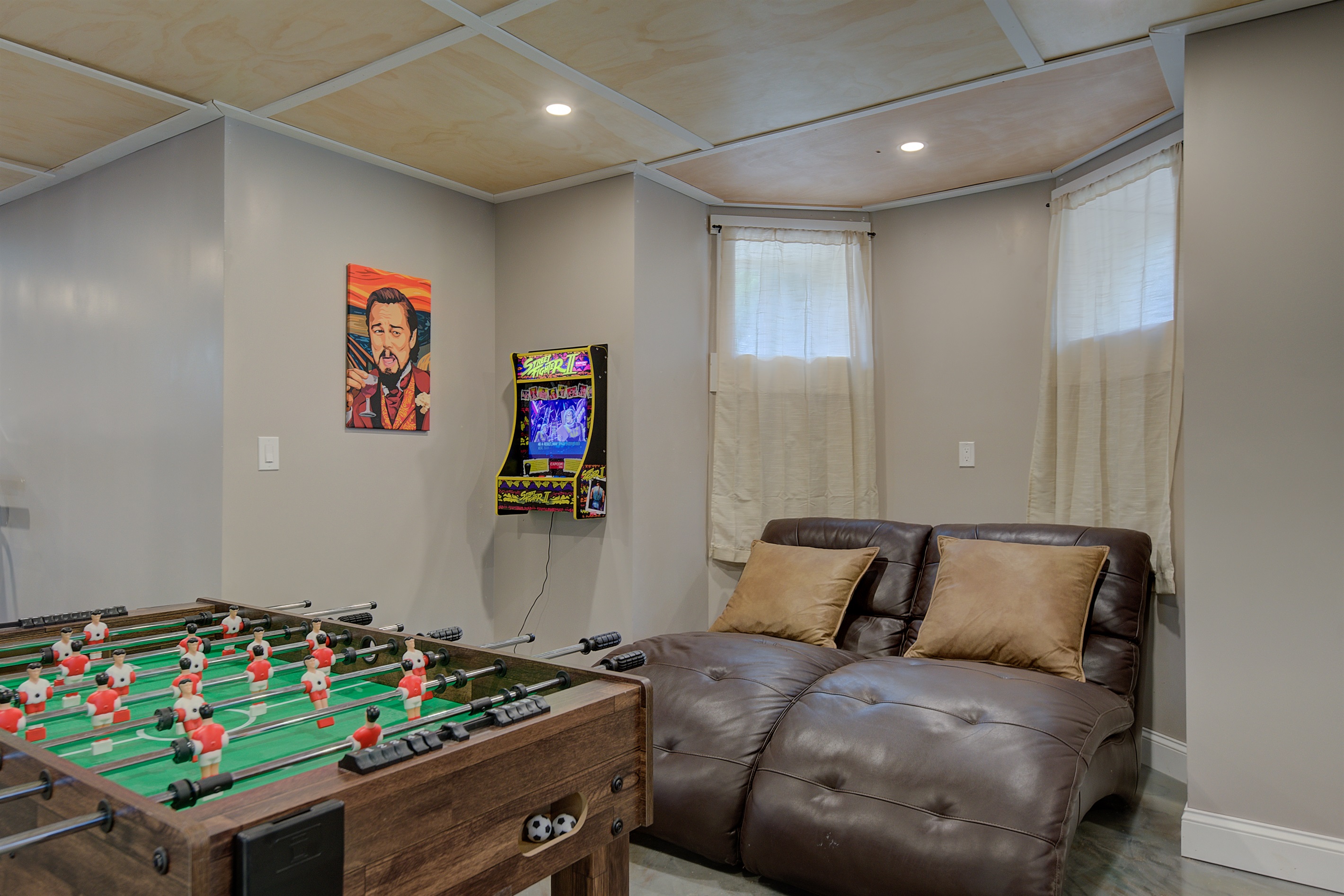 Entertainment options abound in this home! The arcade room is a guest favorite, packed with classic games that keep everyone engaged for hours. When it’s time to wind down, settle into the theater area, featuring cozy seating and a large screen for movie nights or binge-watching your favorite shows. The rec room provides even more hangout space — perfect for game nights, socializing, or simply enjoying a quiet corner with a drink in hand.